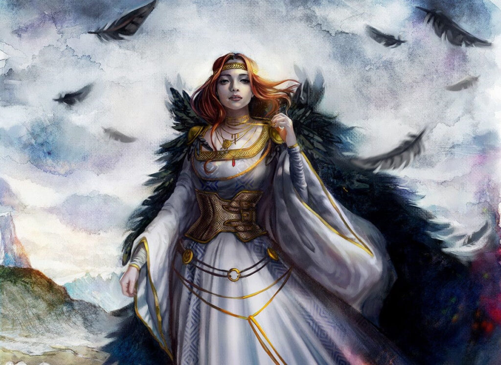 Freya was a goddess of many things: love, beauty, fertility, war, death, and magic. She was the wife of Odin, the All-Father, and the sister of Freyr. Freya was a powerful and beautiful woman, with long, flowing hair and piercing blue eyes. She was often depicted wearing a golden necklace and a cloak of falcon feathers.
